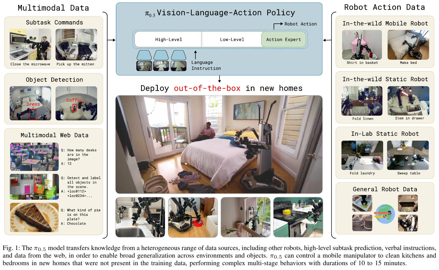 - 2025年4月:π₀.5 实现开放世界家庭长时程任务泛化(10-15分钟连续执行)。