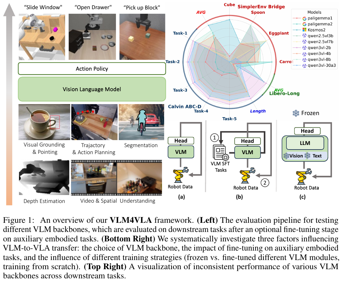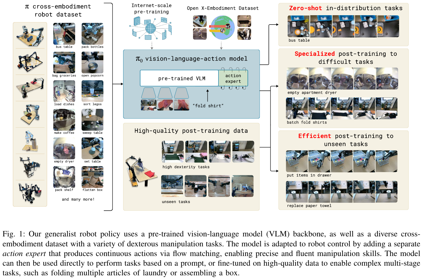 4. 大规模预训练:继承视觉-语言模型的预训练知识,并在机器人演示数据上微调。